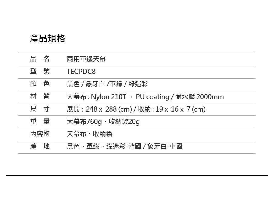 此商品不含營柱.釘繩 尺寸:268*288cm 760g