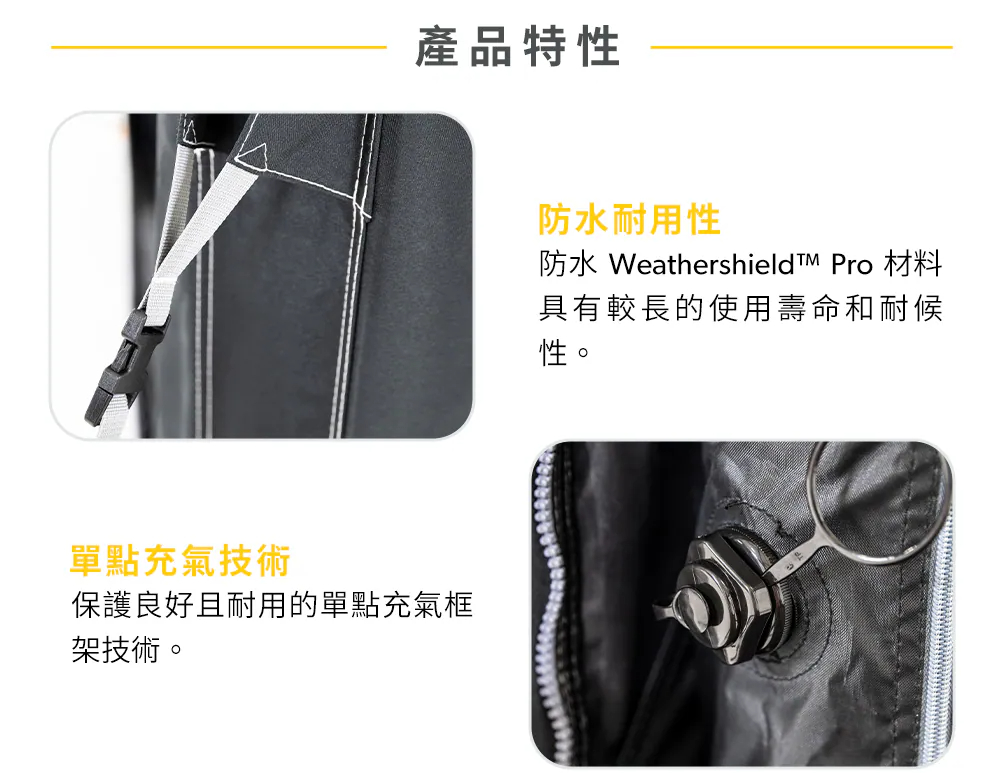 **單點充氣遮陽篷,透過單一外部充氣點充氣